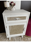 Este velador de madera combina practicidad con un estilo encantador. Sus dos cajones con frentes en cáñamo natural le aportan un aire fresco, mientras que los tiradores en forma de corazón refuerzan su carácter romántico. Su terminación en blanco decapado permite integrarlo fácilmente en dormitorios de estilo shabby chic, vintage o campestre.